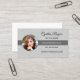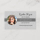 Business card featuring your own photo framed by a simple grey elegant design with a damask pattern. Great for a blogger or other professional.