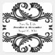 Elegant and refined Chic Damask Save the Date Stickers in black and white featuring a swirl flourish frame. These modern save the date stickers are a classy choice for the sophisticated couple. Easy to customize, simply add your wedding details in the fields provided. Click on the "Customize It" button to find more personalization options such as changing the background color to match any wedding color scheme.