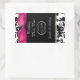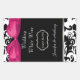 Pretty wedding wine bottle favor stickers done in a black and white damask pattern, on the top and bottom, and a solid black, in the middle. A chic pink satin looking bow accents the top of the sticker. Personalize the white text for your wedding reception.