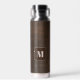 Insulated water bottle featuring a chic dark brown faux leather design with a rectangular shape (optional) and your custom monogram. Great as a personal gift for him.