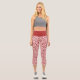 Chic Dark Red White Damask Floral Art Pattern Capri Leggings
