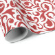 Chic Dark Red White Damask Floral Pattern Wrapping Paper
