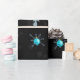 Like fine gems, turquoisy blue holiday ornaments center snowflakes adrift in a black sky. This design is available in a variety of prices and sizes.