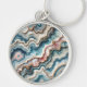 Chic Dark Teal Blue Blush Pink Gold Marble Pattern Keychain