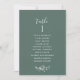 Help your guests find their table with these elegant deep green table seating plan cards with guests' names. Double-sided cards so guests can look from both, front and back for their names. Clear space all around giving you the liberty to use clips or punch holes for hanging displays, or use a table holder/frame. The design has a deep green background, white text, delicate hand-drawn floral detail in white, and handwritten calligraphy details. Several color options. Have all table numbers in the same color or mix colors according to your event's color theme. Part of a collection with a variety of coordinating products available, including table number cards and menus.