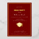 Celebrate in sophisticated style with this customizable graduation party invitation featuring a deep red background and golden real foil elements. The invitation is designed with elegance and simplicity in mind, showcasing: