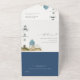 Chic Dusky Aqua Blue Lighthouse Mountain Wedding All In One Invitation