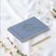 Personalize this elegant monogrammed wedding guestbook featuring real gold, silver, or rose gold foil on exquisite monogram and front, spine, and back text. Dusty blue cover background color in luxurious velvety-soft texture, and beautiful modern calligraphy details in a clean, minimal, and sleek style. Three size options with three inside paper-type choices. Personalize the guestbook with your monogram initials and wedding date on the front, your choice of text for the spine, and a smaller monogram with your initials on the back and one text section for your date, any other message you like, or if you prefer the design without this section, leave the corresponding template text box in blank to delete. Monogram with initials in calligraphy. Part of our dusty blue monogram wedding collection with many coordinating products available.