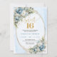 Chic Dusty Blue Floral Sweet 16th Birthday Invites