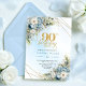 Chic Dusty Blue Gold Script 90th Birthday Invite