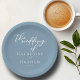 This dusty blue wedding paper plate exudes tranquility for a summer coastal ceremony by the sea. Personalize this light grey blue decor with elegant minimalist typography to match your serene bridal color scheme.