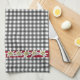 Add a warm European touch to your kitchen, with this lovely cotton towel, done in a black and white gingham pattern and red bands, on both ends. Graphics of the white blooms, of the Alpine flower Edelweiss, form garlands running across the red bands, on the towel. Matching napkins and place mats are available.