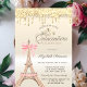 Chic Eiffel Tower Bow Drips Gold Quinceañera Invitation