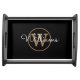 Chic Elegant Black Gold Monogram Script Serving Tray