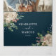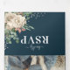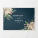 Display all the details of your wedding with this elegant tri-fold 3 in 1 wedding invitation featuring a pretty navy background, stunning blush pink and ivory rose flowers with watercolor eucalyptus greenery, making this perfect for spring and summer weddings. It includes a photo of the happy couple, and wedding invitation. Guests can easily cut away the RSVP postcard and place it in the mail! Simply edit all of the information with your wedding details using the template provided.