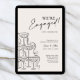 Celebrate love in style with this modern engagement party invitation. Featuring an elegant hand-drawn champagne tower and bold, contemporary typography, this design captures the excitement of new beginnings. The minimalist black-and-white layout offers a timeless look, while the playful bubbly motif makes it perfect for toasts, cocktails, and chic soirées.