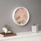 Chic Elegant Floral Muted Coral Background Japandi Floral Home Office Kitchen Living Room Bathroom Clock White Frame