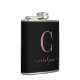 Chic Elegant Pink Rose Gold Monogram Script on a chic Black Flask. Easy to customize with your own name and details. Perfect for your luxury lifestyle! Please contact us at cedarandstring@gmail.com if you need assistance with the design or matching products.