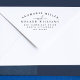 This minimal return address stamp features two names and two last names in modern elegant serif typography, joined by ´- and - word in a chic whimsical script. The name above is arched. Below there is a return address in smaller simple lettering. This stamp is perfect for an unmarried or married couple with different last names. To personalize this stamp, simply click on the ´´Personalize ´´ button.