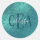 Chic Elegant Teal Blue Sparkly Glitter Monogram Classic Round Sticker