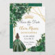 Chic Emerald Green Flowers Princess Quinceañera Save The Date