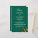 A bold and elegant wedding layout featuring a rich emerald green background with golden wedding rings in the bottom corner. A sophisticated and timeless design, perfect for classic and formal ceremonies.