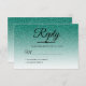 A chic, pretty emerald green glitter ombre Sweet 16 RSVP card with emerald green ombre pattern fading onto a white background. The text "Reply" in black is set in modern script. Perfect for a glamorous Sweet sixteen, perfect for her, the fashionista who loves modern pattern, sparkle, luxury and glam. Exclusively designed for you by Happy Dolphn Studio.