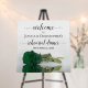 Add a touch of style to your wedding rehearsal dinner with this beautiful welcome sign. It features a classic timeless design with elegant script calligraphy and a single long stemmed emerald green colored rose lying on its side mirrored in a pool of water. Romantic, stylish, and classy, this sign is a wonderful way to welcome your special guests.