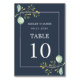 Chic Eucalyptus Green Navy Blue Botanical Wedding Table Number