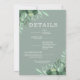 All in one wedding invitations feature your ceremony details on the front and your all your wedding details on the back along with elegant watercolor eucalyptus leaves on the back. MATCHING items in our store.