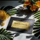 Chic Faux Gold Foil Black Leather Texture Business Card template.