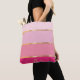 Carry your essentials in style with this chic tote bag, adorned with an array of pink stripes ranging from soft pastels to bold hues. Gold lines separate the colors, adding a touch of luxury to the design. Customize it with your name, monogram, or any text you like, or keep it simple by removing the sample text. This tote bag combines fashion and functionality, making it a perfect accessory for everyday use or a thoughtful gift.