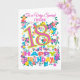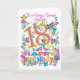 A very pretty, floral 18th Birthday Card for a 'Very Special Friend', with a Candy Pink and Green number 18 and the word 'Step Daughter in Candy Pink', with clusters of bright flowers and butterflies and 'Happy Birthday' in all the colours of the rainbow.