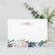 Modern Elegant Chic Girly Script Floral Boho Blush Pink White Peony Hydrangea Navy Blue Green Leaves Botanical Monogram Gray Note Card