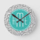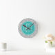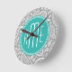 Chic Floral Gray Paisley Pattern & Blue Monogram Round Clock