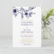Chic Floral Magnolia Branch Navy Blue GOLD Wedding Invitation