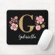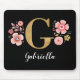 A beautiful, feminine monogrammed pink floral mouse pad, featuring pink flowers and a faux gold monogram letter G on a black background. Personalize the mouse pad by adding your name underneath the monogram. Makes a fun gift for a friend or for a bridesmaid gift. Designed for you by Blackberry Boulevard.