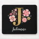 A beautiful, feminine monogrammed pink floral mouse pad, featuring pink flowers and a faux gold monogram letter J ona black background. Personalize the mouse pad by adding your name underneath the monogram. Makes a fun gift for a friend or for a bridesmaid gift. Designed for you by Blackberry Boulevard.