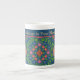 A chic Bone China Mug to personalize, with a colorful Floral Rangoli Pattern on a Deep Blue Background. Part of the Posh & Painterly 'Rangoli' collection, this design can be adjusted to fit any Mug.