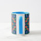 A pretty Coffee Mug, with a Blue lip and handle and a colorful Floral Rangoli Pattern on a Deep Blue Background that you can change if you wish. Part of the Posh & Painterly 'Rangoli' collection, this pattern will fit any of the mugs.