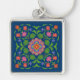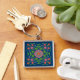 A square, silver-coloured Keychain, with a colourful Floral Rangoli Pattern on a Deep Blue Background that you can change if you wish. Part of the Posh & Painterly 'Rangoli' collection, this pattern can be adjusted to fit any Keychain.
