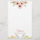 A chic floral stationery, this product features lovely flowers on the top and the bottom. There is a place to insert your name in text in lovely pink flowers.