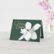 Beautiful white Southern Magnolia flower against an aqua-green color background. The flower covers the front of this card which can be used as a thank you card, a birthday card, or any other card of your choice. Customize it with your text and/or pictures to make it one-of-a-kind!