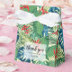 Tropical red flowers, green palm tree and blue monstera leaves tent style party favor boxes are fun for any occasion. MATCHING items in our store.
