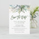 These elegant, minimalist wedding save the date cards feature trendy watercolor greenery, with modern handwritten script typography and your personal photo on the back.