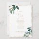 This chic foliage table number 1 seating chart is perfect for a rustic wedding. The design features green eucalyptus foliage adorning a gold geometric frame.