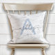 Chic French Blue & Gray Marble Name Monogram Throw Pillow