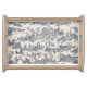 Lovely serving tray, with graphics of a blue and white vintage French Toile design. Customize to add text to this great looking tray.
