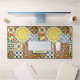 Chic geometric Mediterranean orange tiles monogram Desk Mat. Chic floral botanical citrus garden pattern inspired by the summer bright italian themed art of majolica. Beautiful Sicilian ceramic tiles in pink yellow and blue. A fun style bright design for home decor, clothes, mobile and Ipad cases, invitations and much more. You can change all text colors and fonts, click to customize further underneath the text customisation area this will take you into the design tool. A unique gift for birthdays, holidays and any special occasion. Whether for valentines day, Christmas or as a gift in general it makes a great gift idea