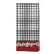Pretty cloth napkin done in a black and white gingham pattern, with a solid red band, across the bottom. Graphics of white Edelweiss blooms run across the red band. Great way to add a touch of European warmth to your dinette table. Matching products available.